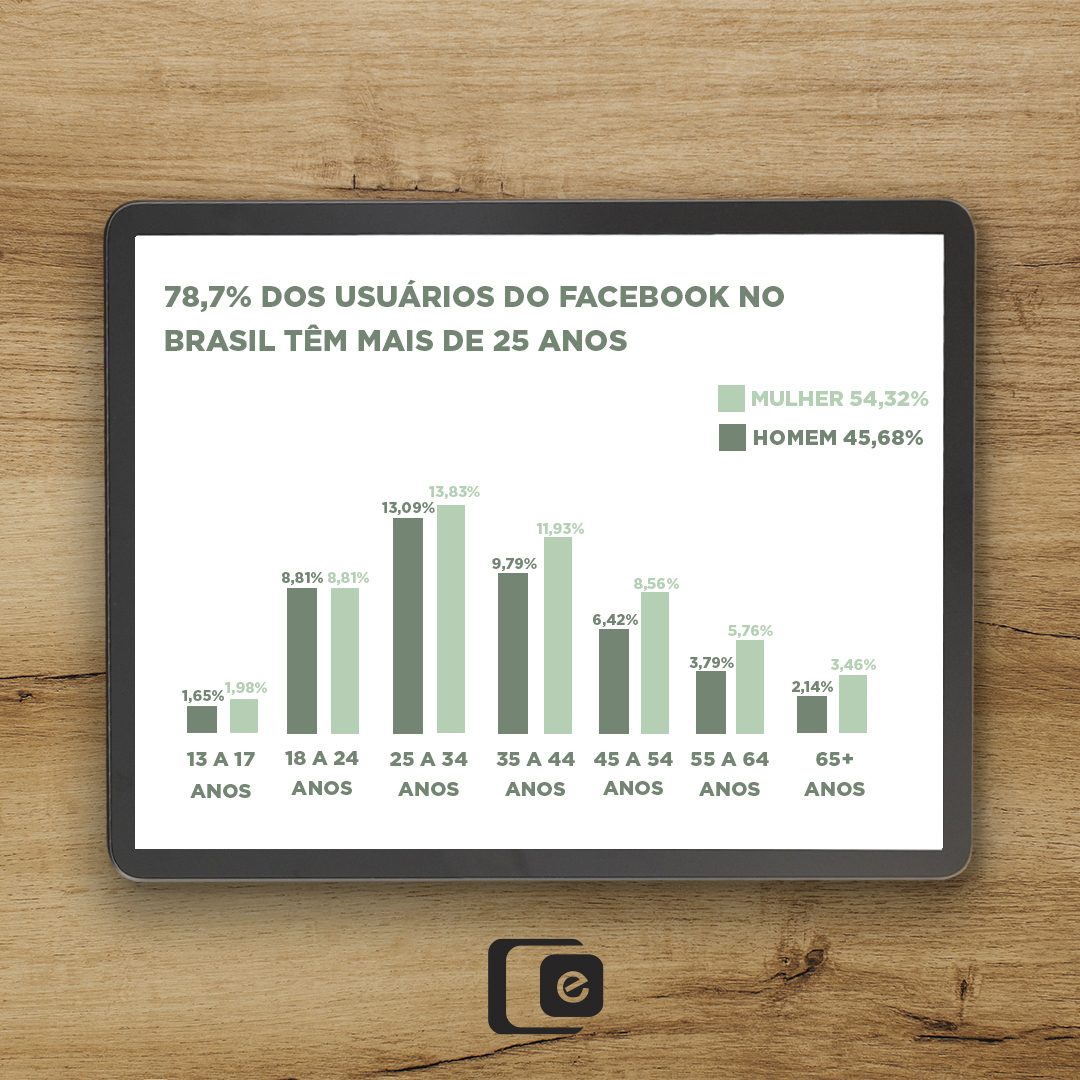 É importante lembrar que os brasileiros passam em média, por mês, 15,6 HORAS no Instagram e 13,5 HORAS no Facebook, mas os usuários ACIMA DE 45 ANOS usam mais o Facebook.